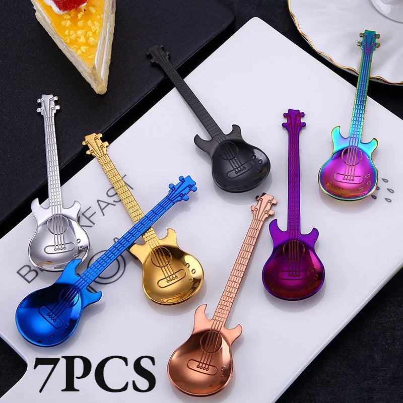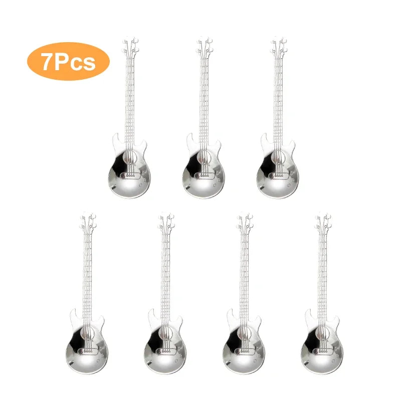Afralia™ Stainless Steel Guitar Teaspoon Coffee Spoon Set for Stylish Tableware
