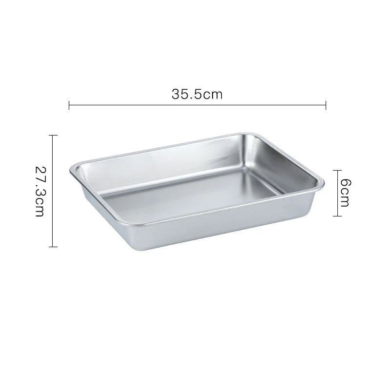 Introducing the Afralia™ Stainless Steel Rectangle Food Tray, a versatile and high-quality addition to your kitchen arsenal. Crafted from premium stainless steel, this bakeware is designed to meet your culinary needs with style and ease.