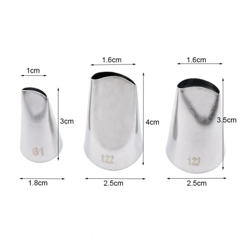 Crafted from high-quality stainless steel, these piping tips are designed to help you create beautiful rose petal designs with ease. The set includes three different sizes, allowing you to experiment and create a variety of stunning designs on your cakes and baked goods.