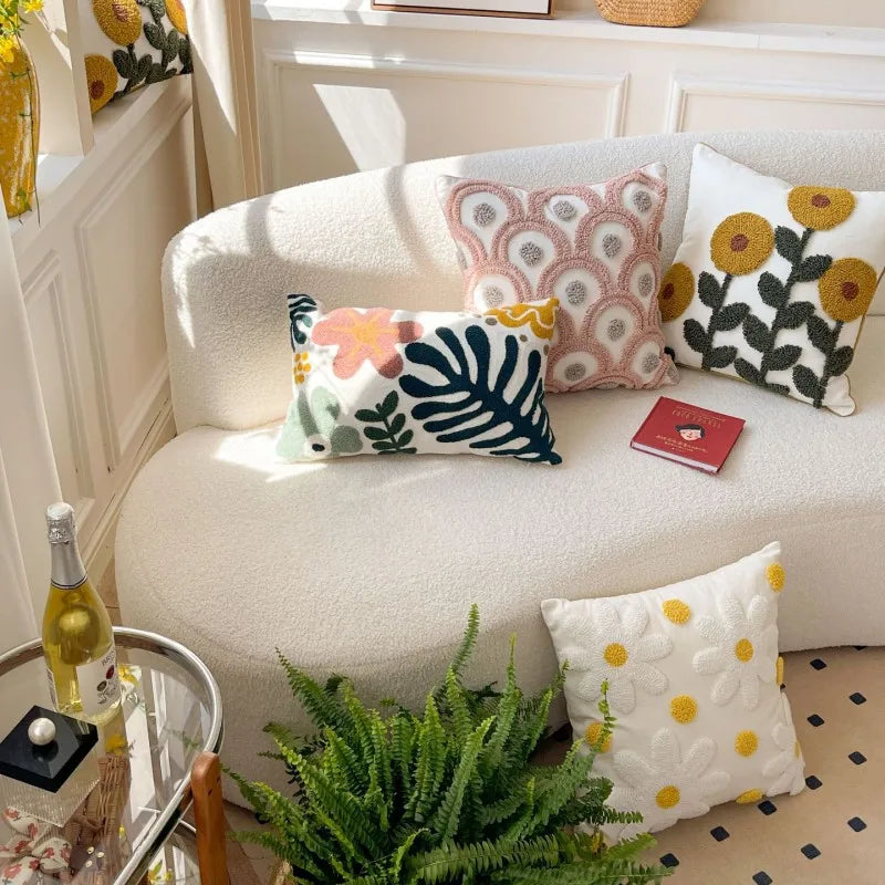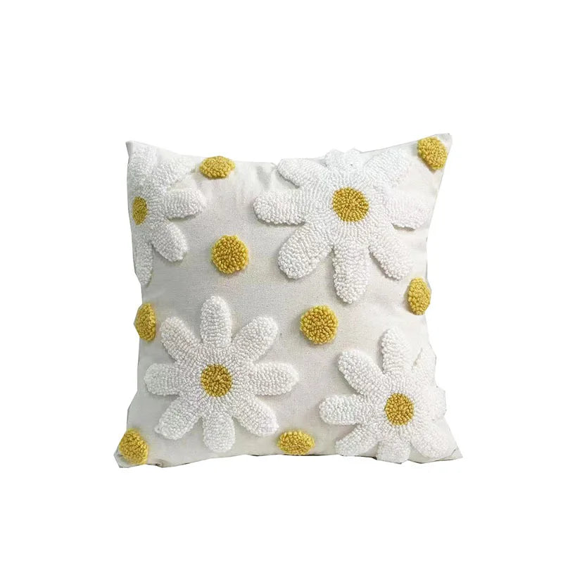 Crafted from high-quality materials, this cushion cover features a delicate sunflower embroidery in a twill style. The floral pattern and tufted details create a cozy and inviting look, perfect for both modern and traditional interiors.