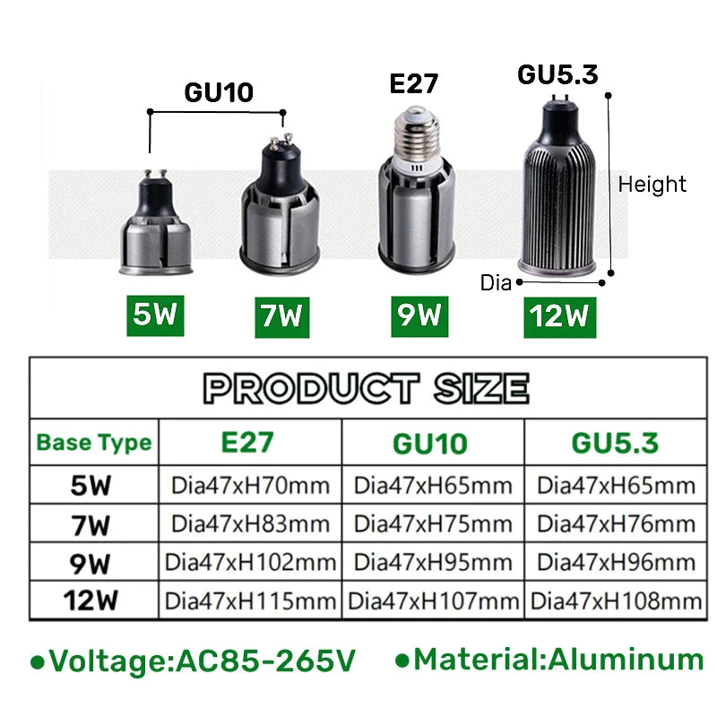 Afralia™ Super Bright COB LED Bulb 5W-12W, 3000-6000K, GU10/GU5.3/E27 Indoor Spot Lighting