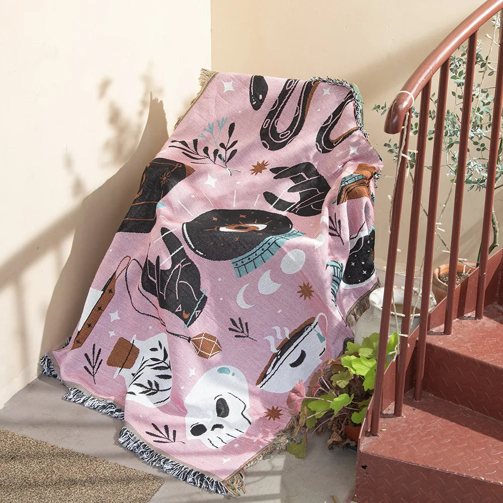 Elevate your space with the Afralia™ Tarot Boho Cotton Linen Blanket, a cozy addition to your sofa, bed, or travel adventures. This quality retro and nostalgic throw blanket offers a touch of old-world charm to your home decor.