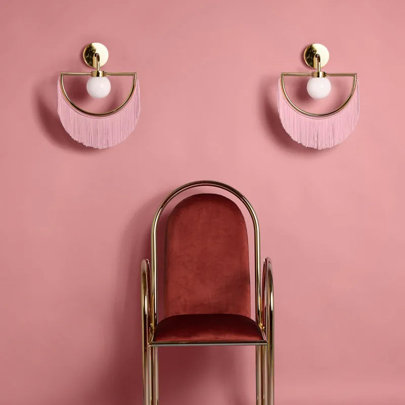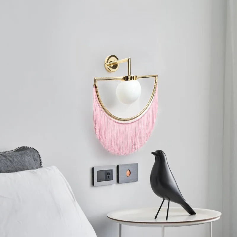 Afralia™ Tassel Glass Ball Wall Lamp: Pink LED Decor for Living Room, Hotel, Reading