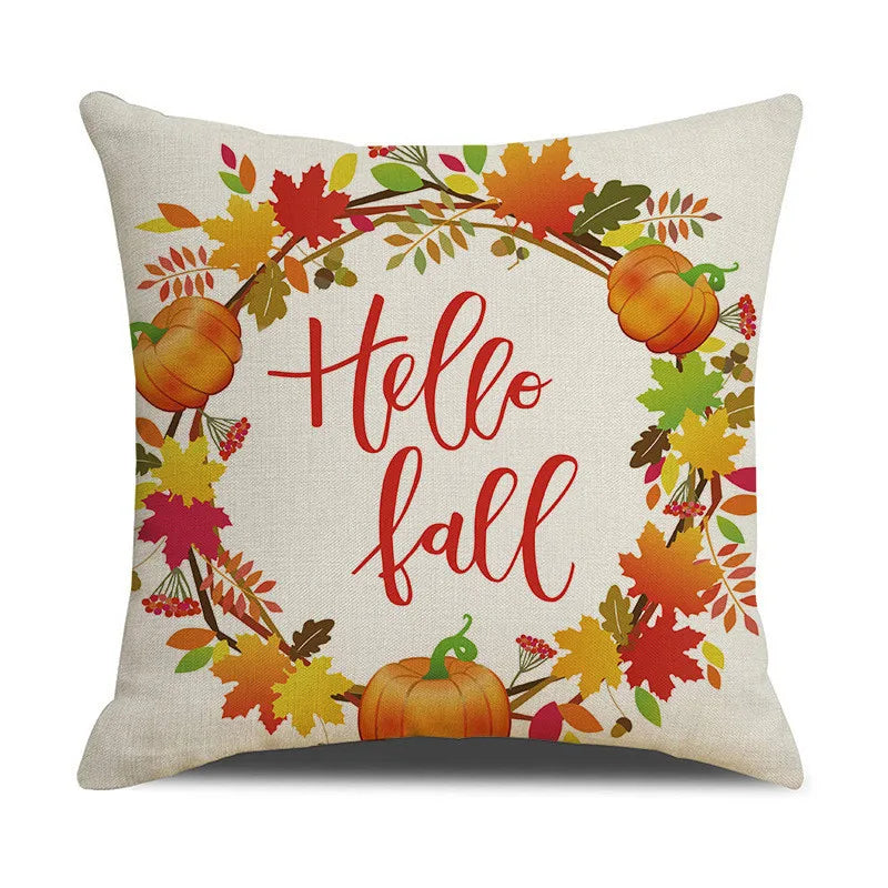Afralia™ Thanksgiving Pumpkin Pillow Cover, Hello Autumn Decorative Cotton Linen Cushion Case