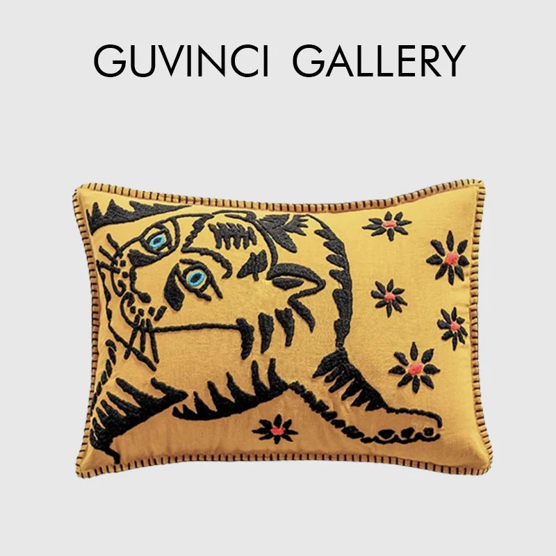 Afralia™ Tiger Embroidered Throw Pillow Covers for Sofa Bed Couch – Luxury Handmade Décor