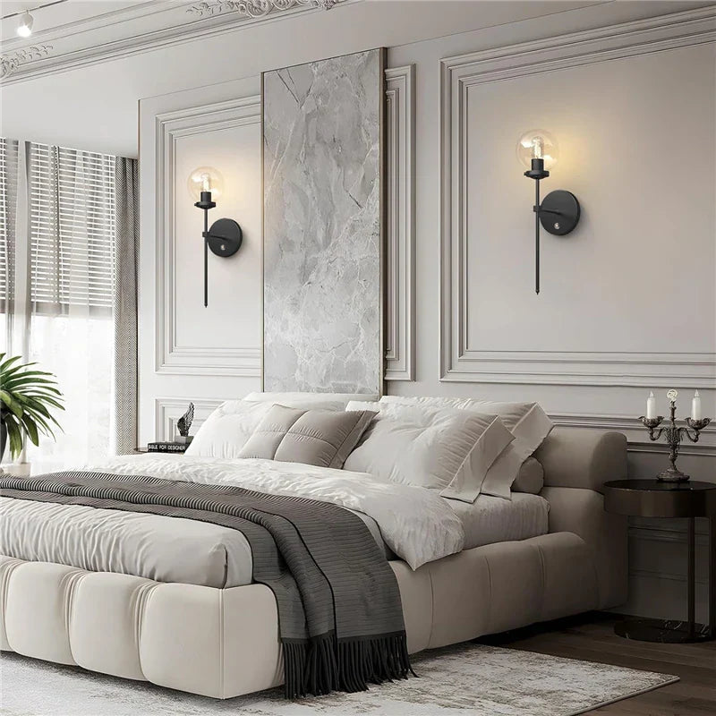 This wall sconce is crafted with high-quality materials and attention to detail, ensuring durability and style. The black lampshade complements any interior design, making it a versatile addition to your home. The Afralia™ Touch Switch Glass Ball LED Wall Sconce is perfect for the parlor, study, master bedroom, other bedrooms, hotel hall, or hotel room.