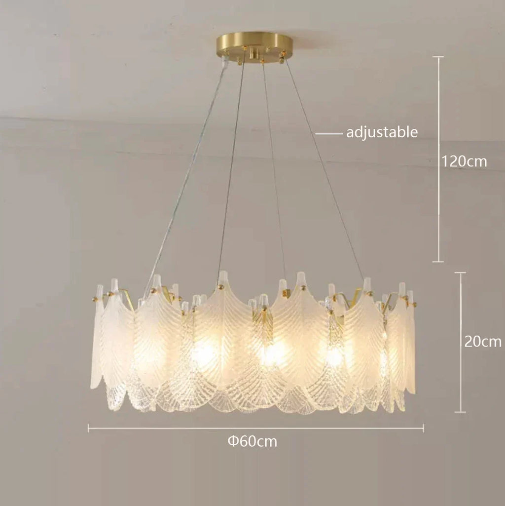 Featuring a frosted glass shade type that directs light both up and down, this chandelier creates a warm and inviting atmosphere in any space. Its dimmable feature allows you to adjust the brightness to suit your needs, adding versatility to its already remarkable design.