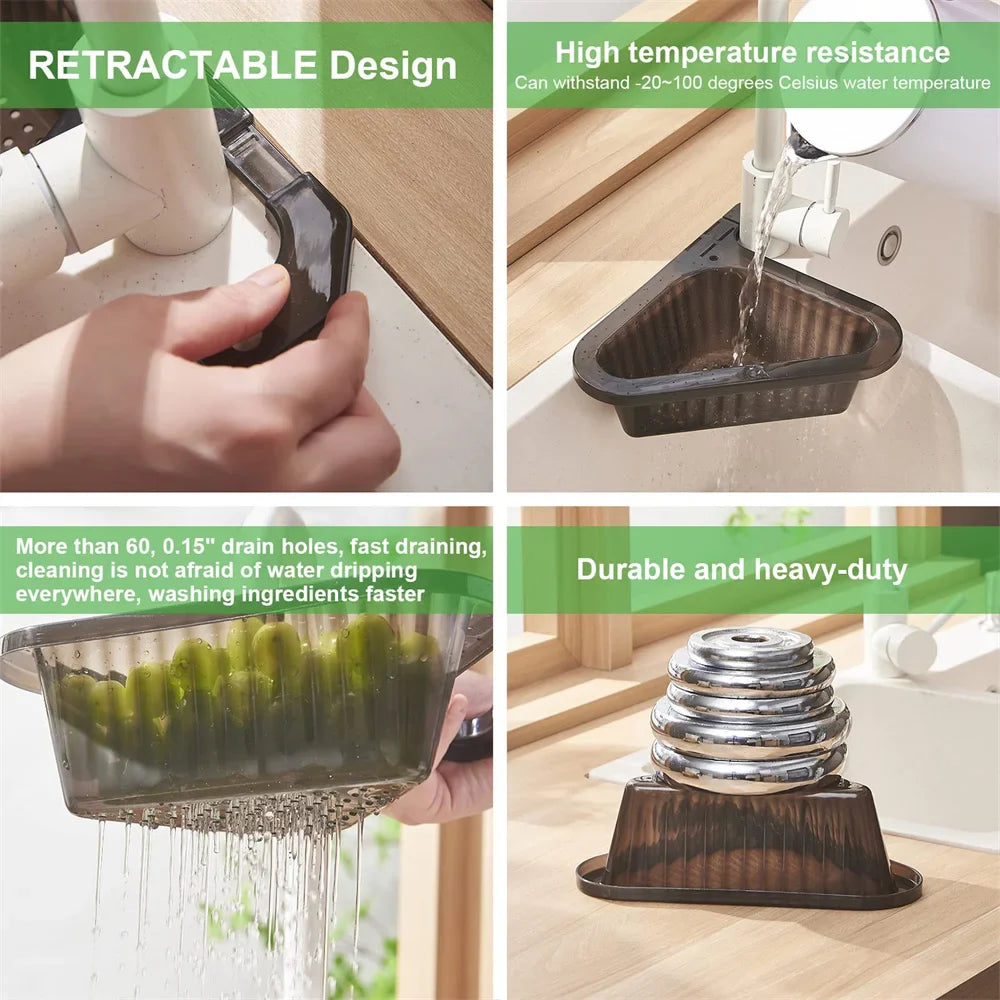 Afralia™ Triangular Sink Strainer Filter Basket Extendable Handle Storage Hanging Drain Rack