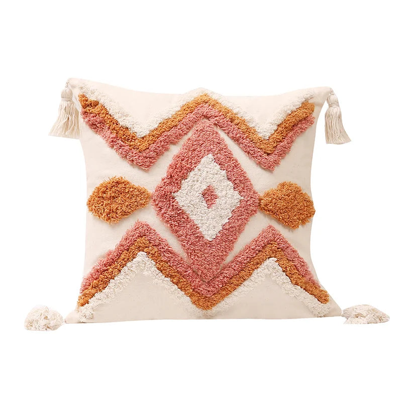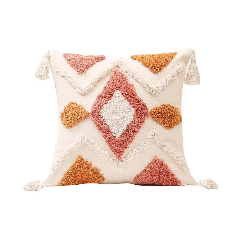 Introducing the Afralia™ Tufted Orange Ivory Boho Tassel Cushion Cover, a luxurious addition to your home decor. Crafted from swan flannel plush cotton linen with intricate embroidery, this cushion cover exudes elegance and charm.