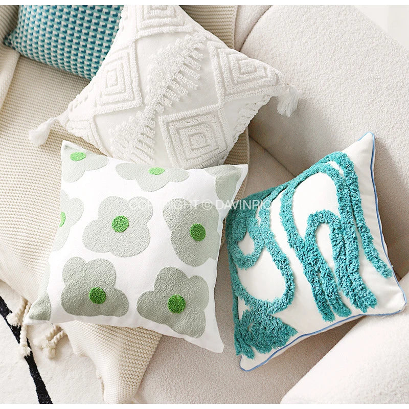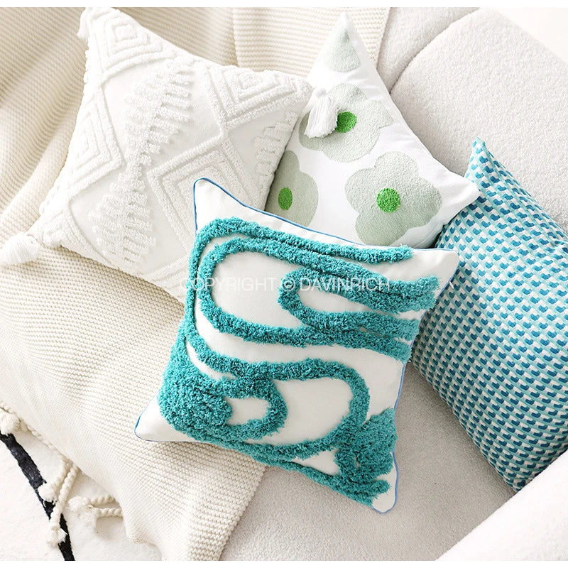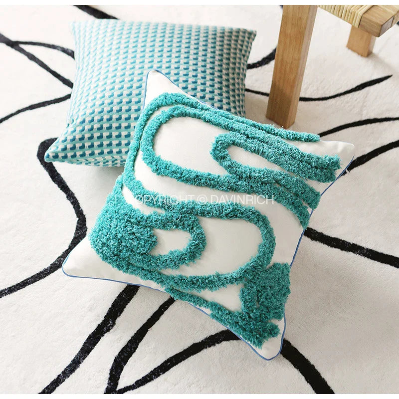 Afralia™ Turquoise Wave Decorative Cushion Cover, Hand-Tufted Pillow Case