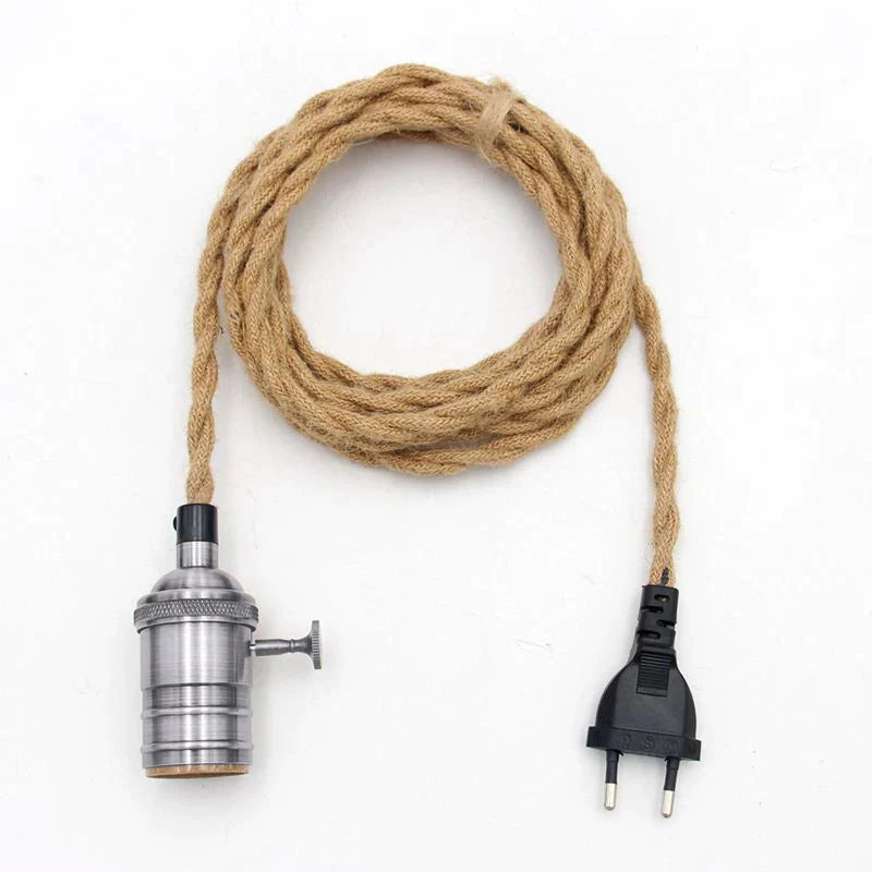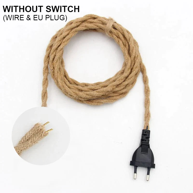 Afralia™ Twisted Hemp Rope Decorative Lamp Base with E27 Socket, 2M Electrical Wire