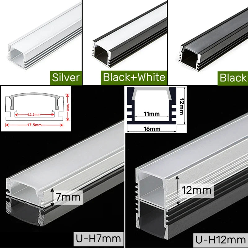 Afralia™ U-Shaped LED Aluminum Profile for 5050 5630 Strip Light with Black/Milky Cover
