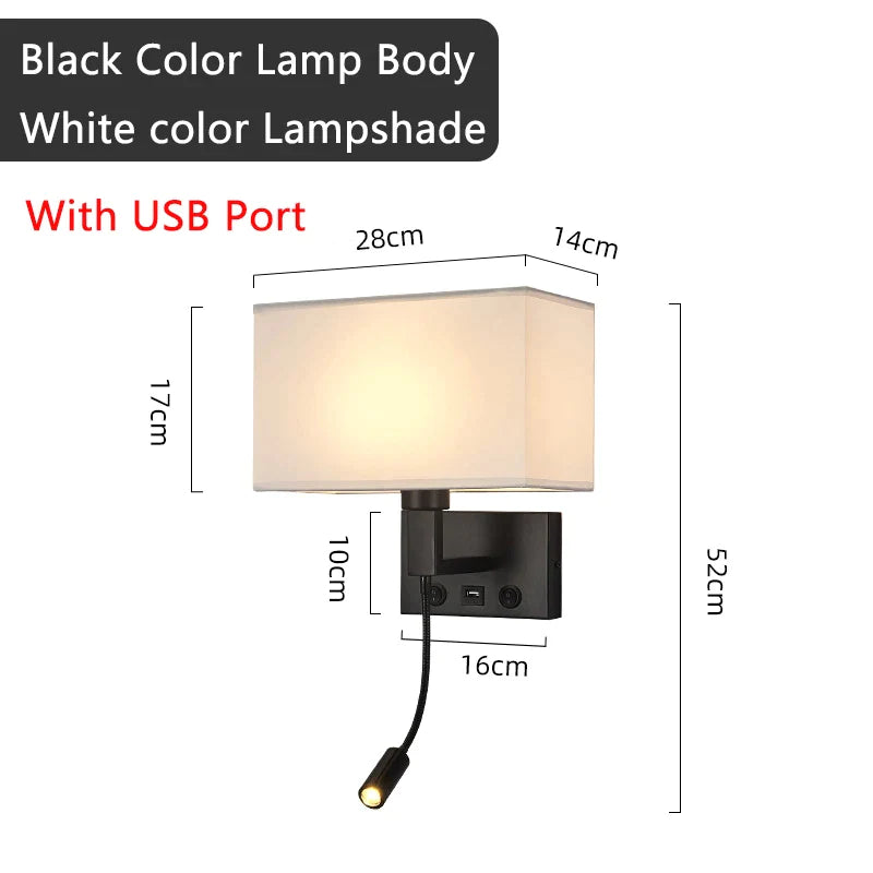 Afralia™ USB Port Bedside Wall Lamp with LED Light for Reading and Phone Charging