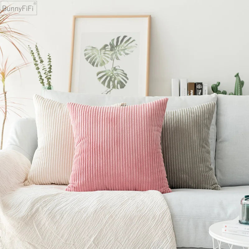 Afralia™ Velvet Corduroy Flocked Pillow Case Soft Home Decor Cover in Pink Grey Blue Coffee