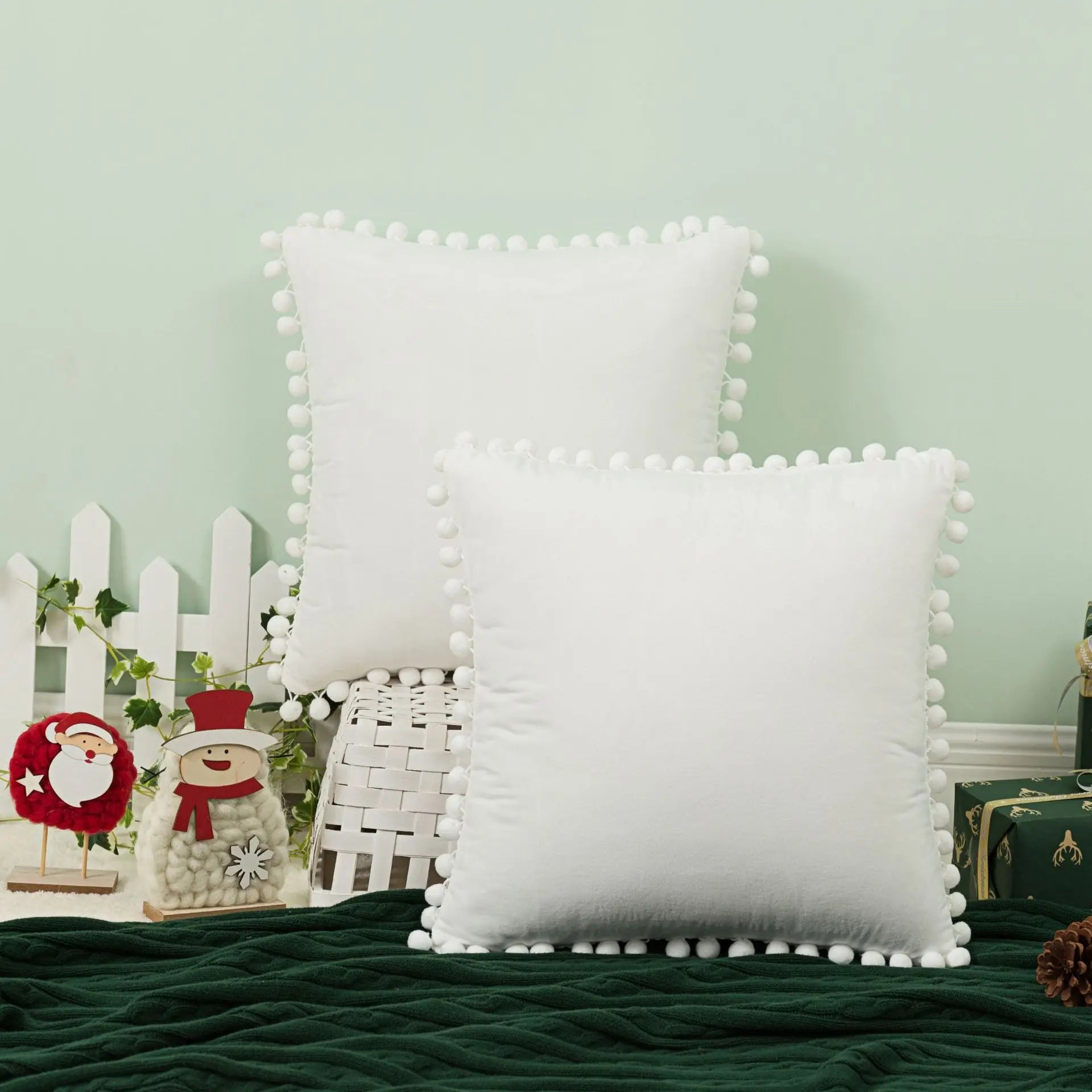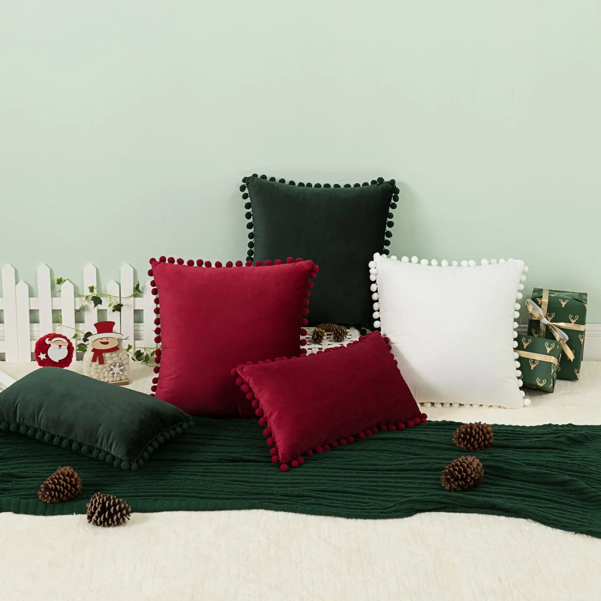 Afralia™ Velvet Pompom Ball Christmas Cushion Covers - Red Green White Soft Decor for Home