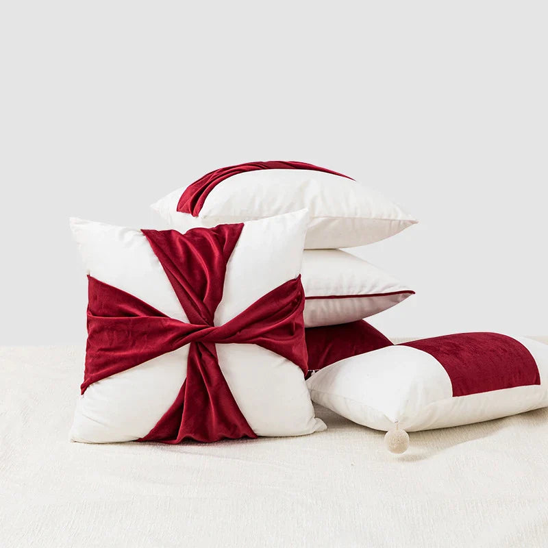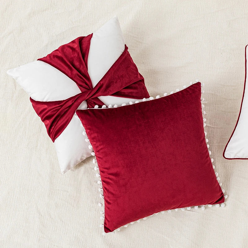 Afralia™ Velvet Red Bow Hairball Stitching Christmas Pillow Cover