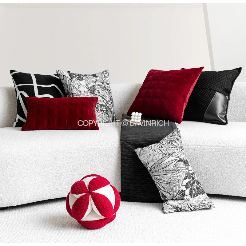 Afralia™ Vintage Bordeaux Red Velvet Throw Pillow Cover for Sofa Couch Armchair