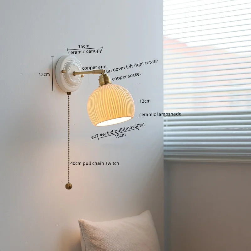 Afralia™ Vintage Ceramic LED Wall Sconce Light with Copper Pull Chain Switch