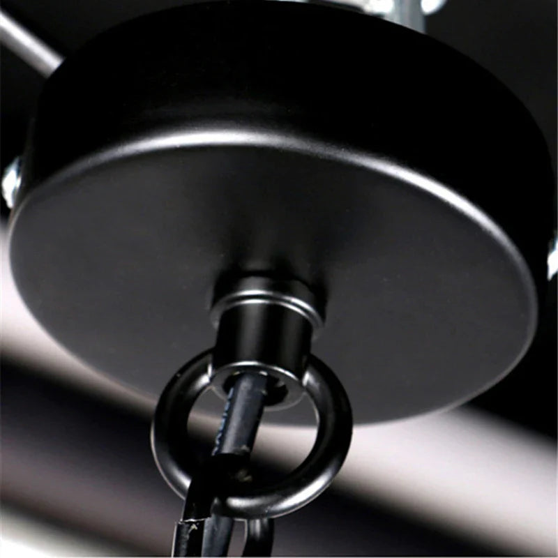 Crafted with meticulous attention to detail, this chandelier is a masterpiece of artisanal quality. The black lampshade adds a touch of sophistication, while the forged metal construction ensures durability and longevity. The retro design brings a nostalgic charm to any room, creating a warm and inviting atmosphere.