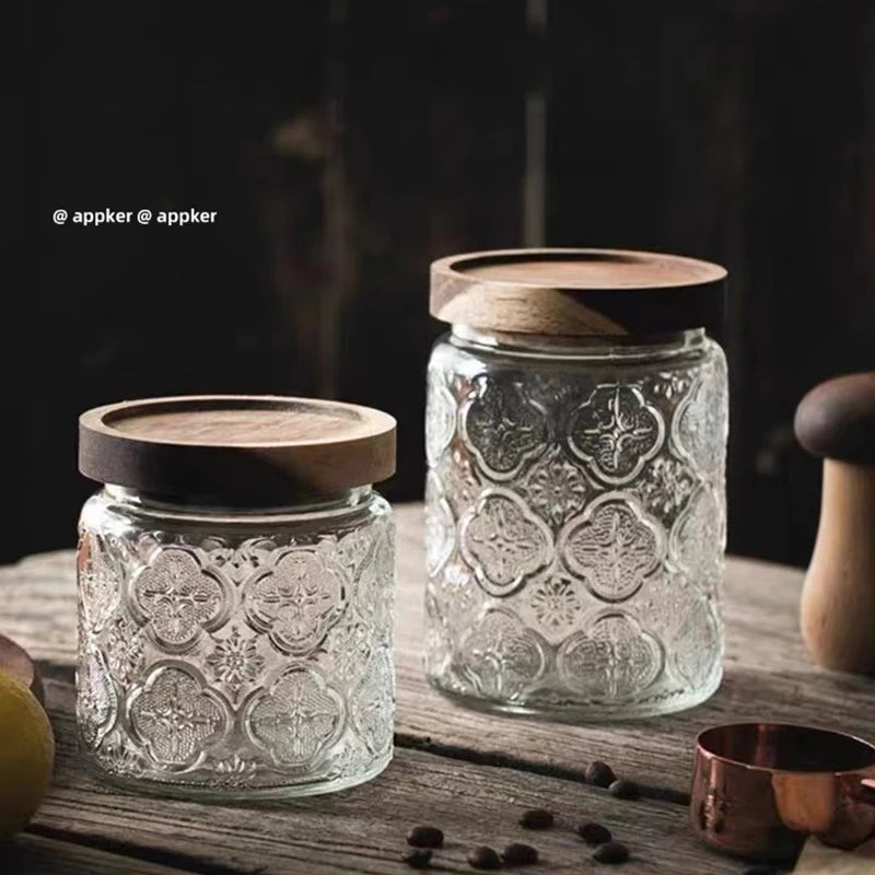 Afralia™ Vintage Glass Jar Canister with Seal Wooden Lid - Retro Design Airtight Container