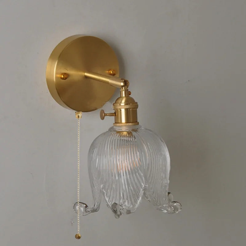 Afralia™ Vintage Glass Wall Sconce - LED Pull Chain Switch Up Down Rotate Wall Lamp