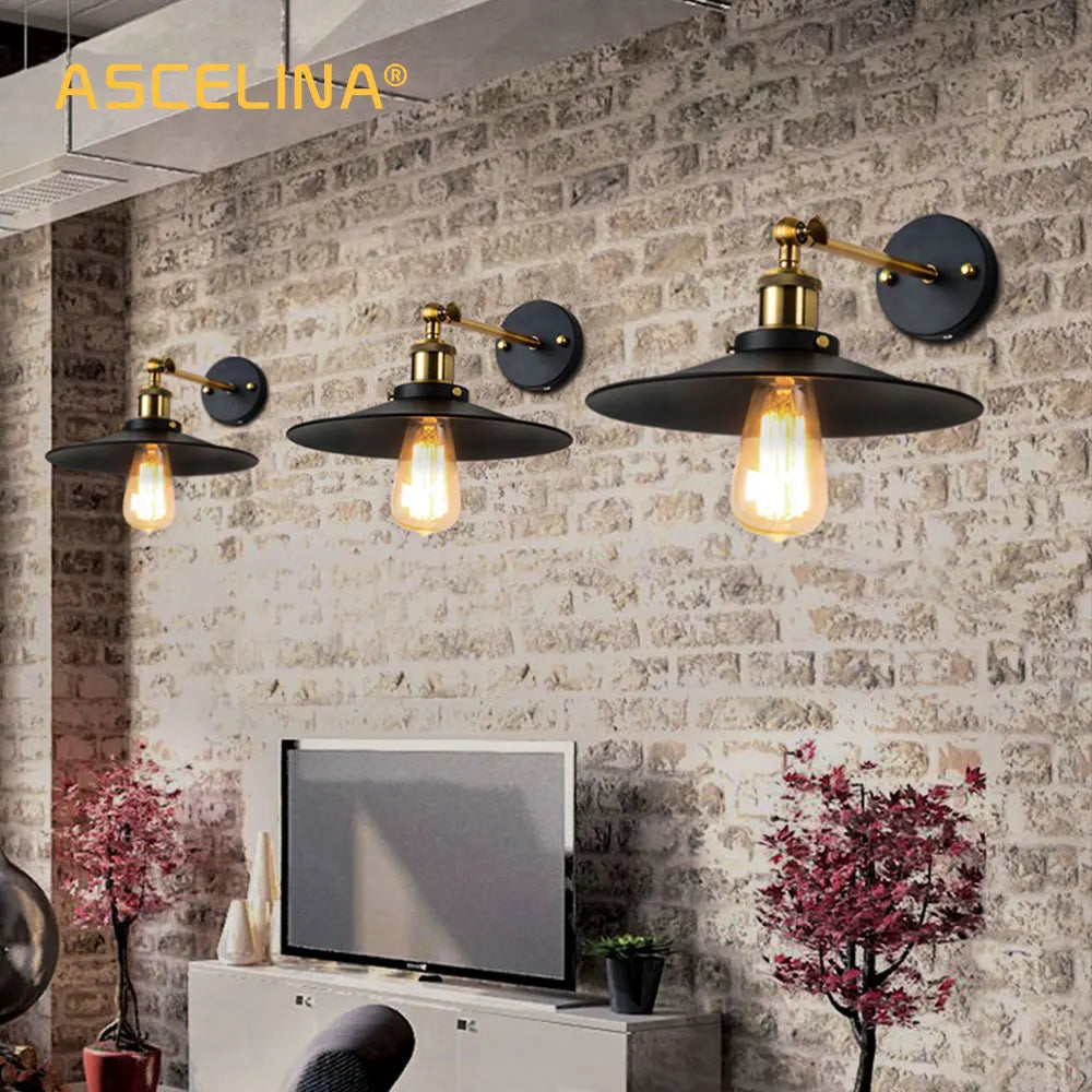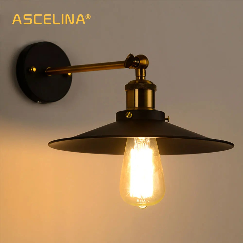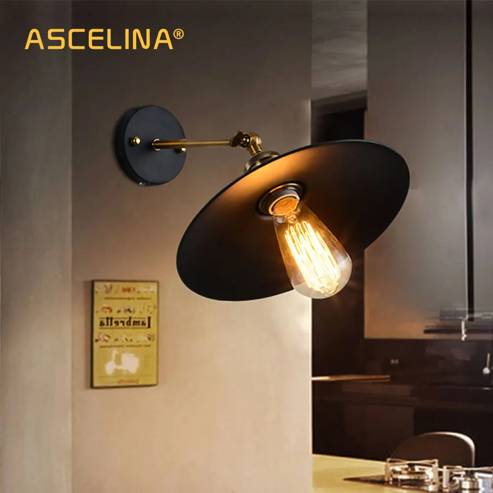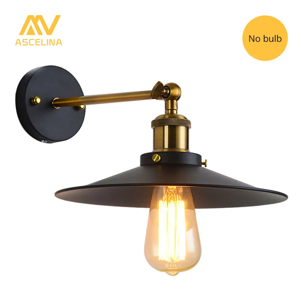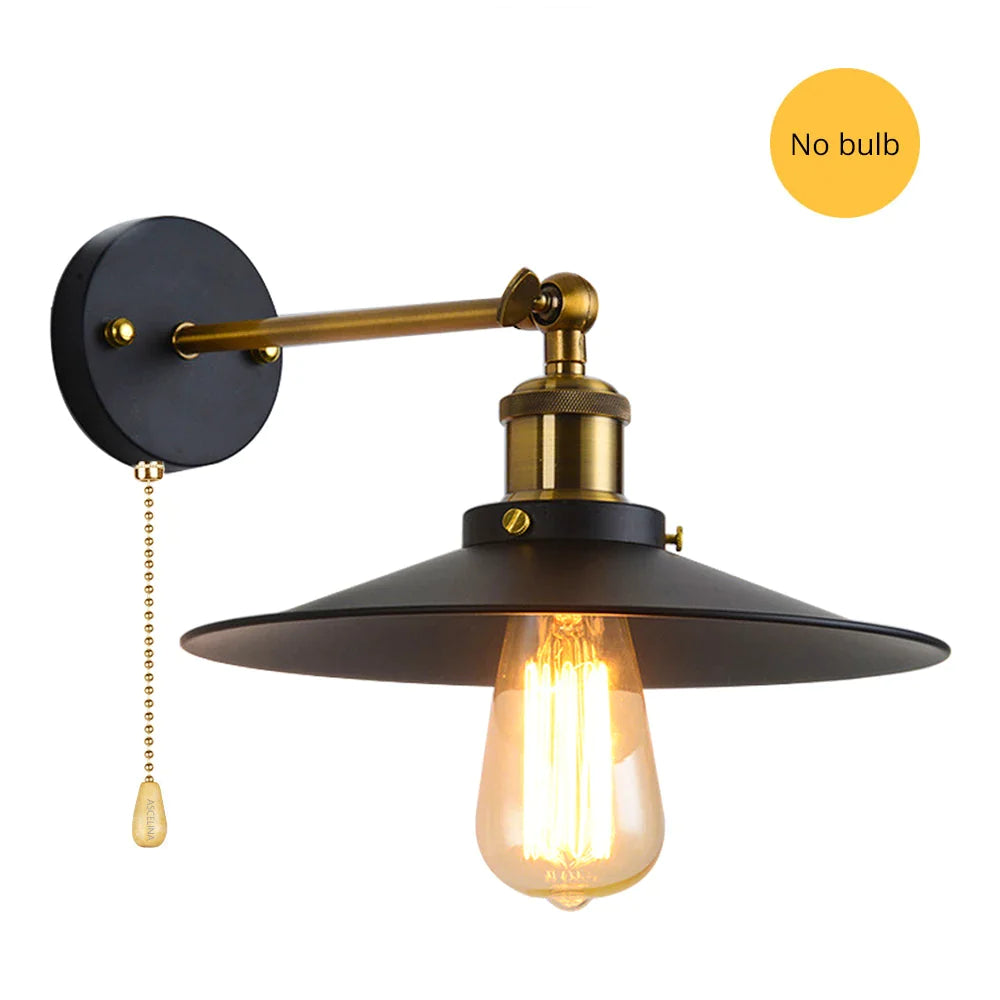 Afralia™ Vintage Industrial Wall Sconces Metal Lampshade Bedside Light E27 Bulbs