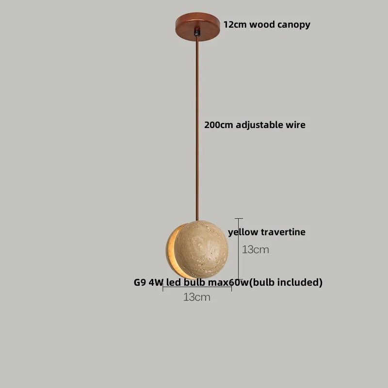 Afralia™ Wabi Sabi Yellow Travertine Stone LED Pendant Light for Living Room and Bar Counter