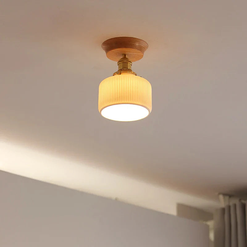 Enhance the ambiance of your Kitchen, Dining Room, Bed Room, Foyer, Study, or Bathroom with this elegant ceiling light. The body is crafted from high-quality Ceramic, Copper, and Wood materials, giving it a sophisticated look that complements any décor style.
