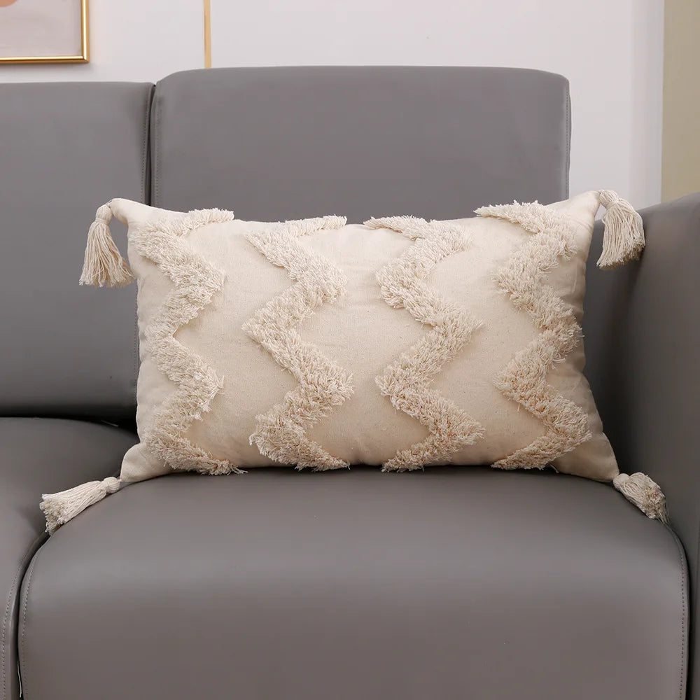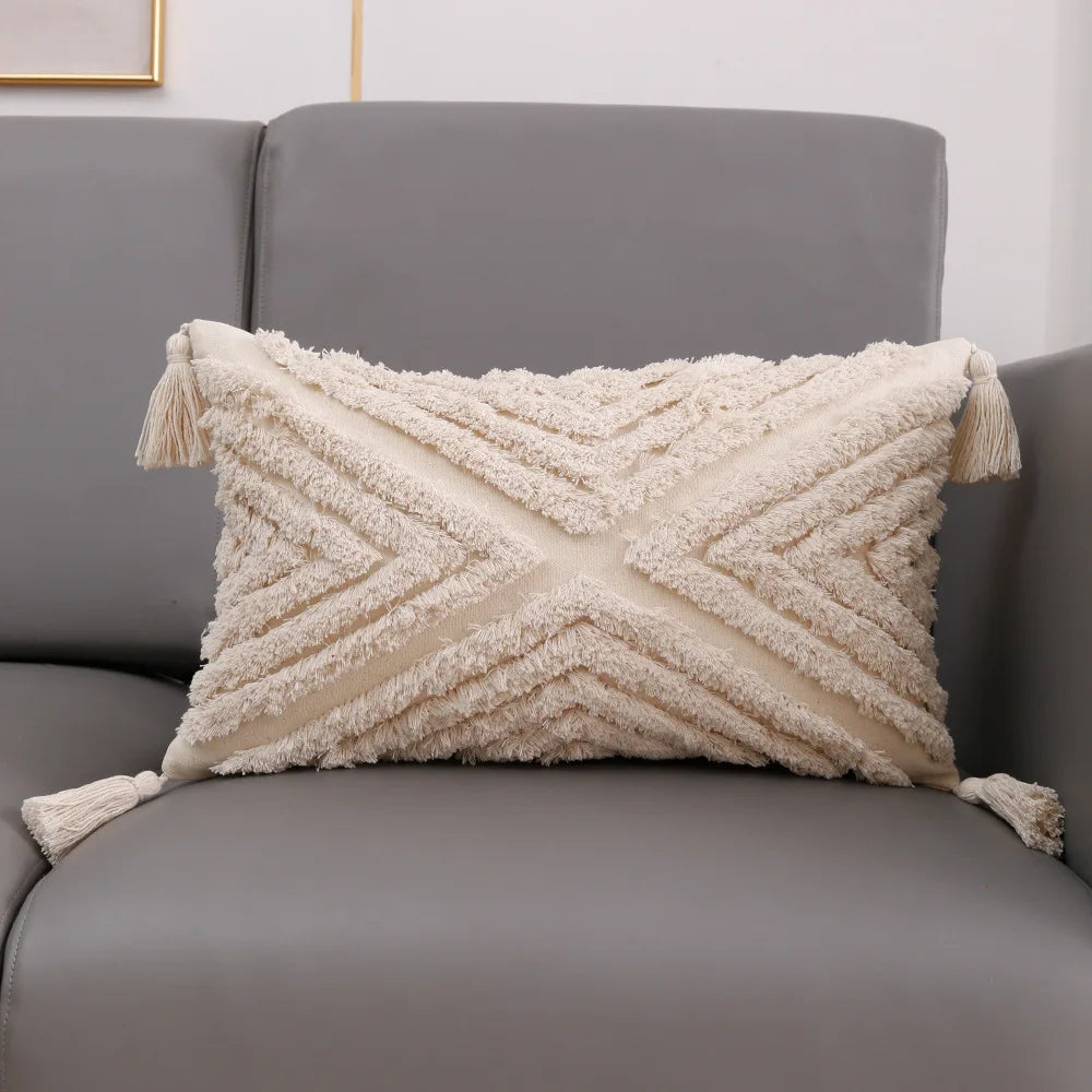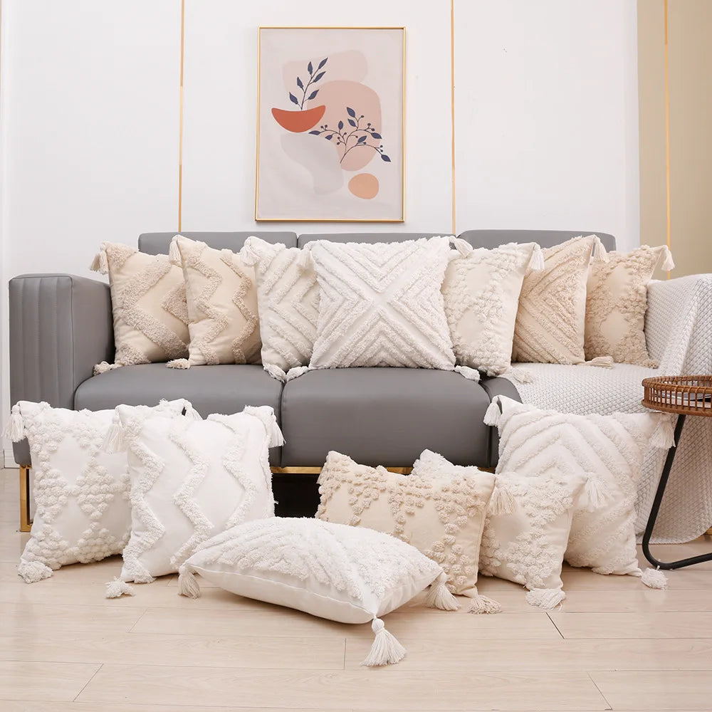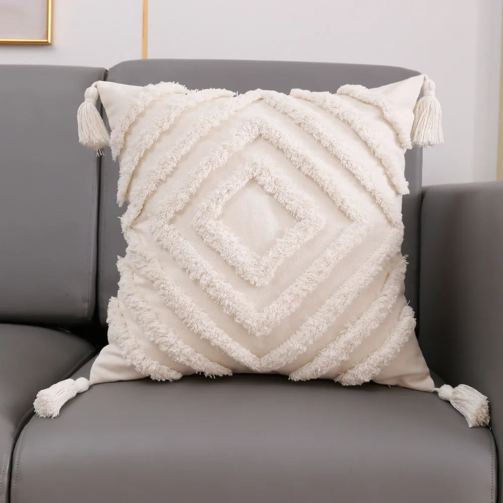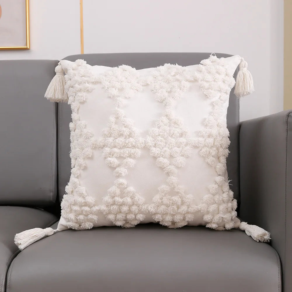 Afralia™ White Diamond Cushion Cover with Tassel Corners - Decorative Throw Pillow Cover