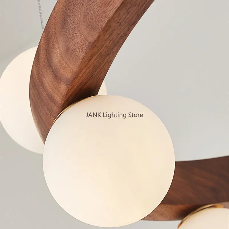 Afralia™ White Glass Ball Walnut Pendant Chandelier for Living Dining Room