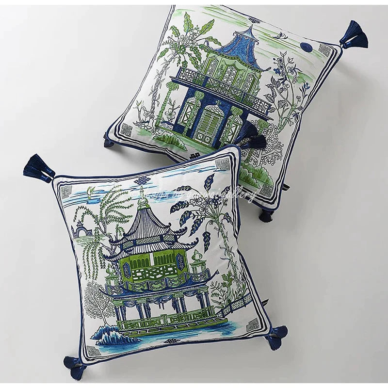Afralia™ Willow Pavilion Decorative Throw Pillow Cover for Home Villa Hotel Office