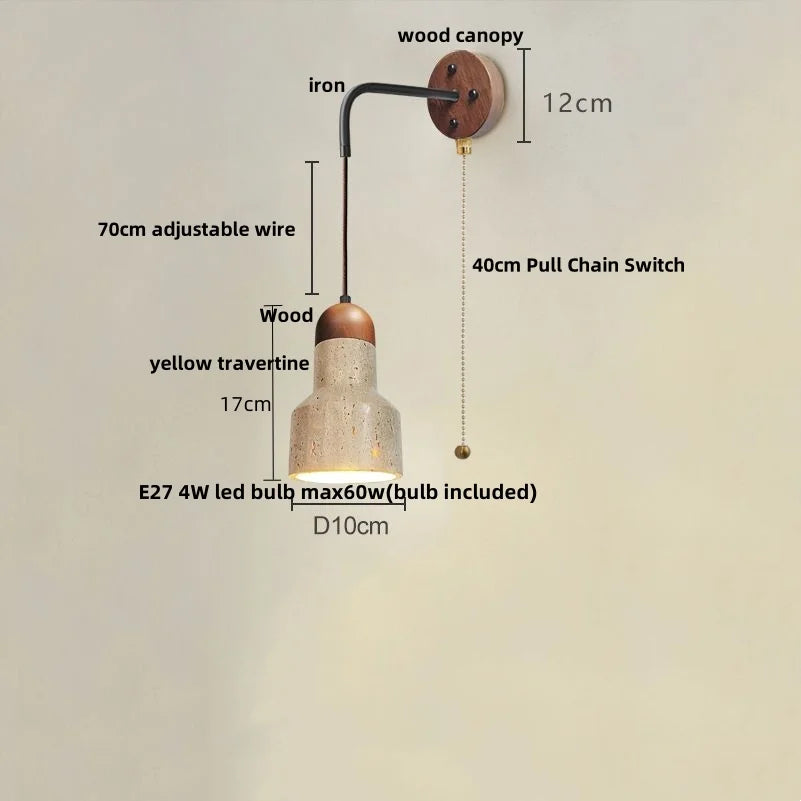 Introducing the Afralia™ Wood Canopy LED Wall Sconce, a sleek and modern addition to your home decor. This wall lamp is perfect for the Kitchen, Dining Room, Bed Room, Foyer, Study, or Bathroom. Crafted from high-quality Yellow Travertine Stone with a Wood Canopy, this wall sconce exudes elegance and sophistication.