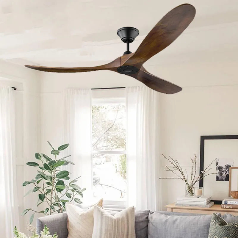 Afralia™ Wood Ceiling Fan 42-60" Industrial Vintage Retro DC Motor Remote-Controlled Fans
