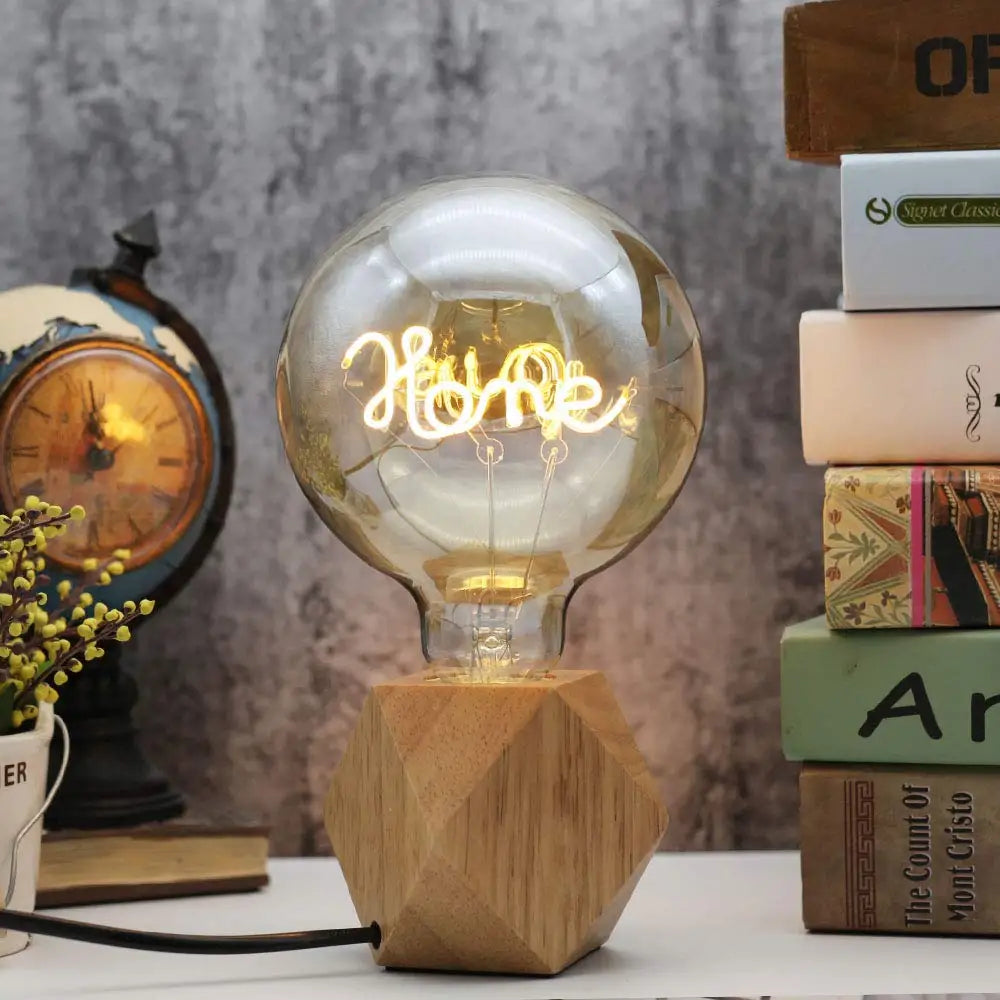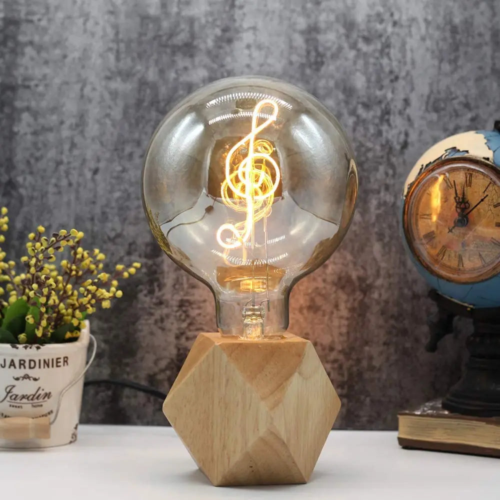 Afralia™ Wooden Table Lamp with LED Filament Decorative Bulb
