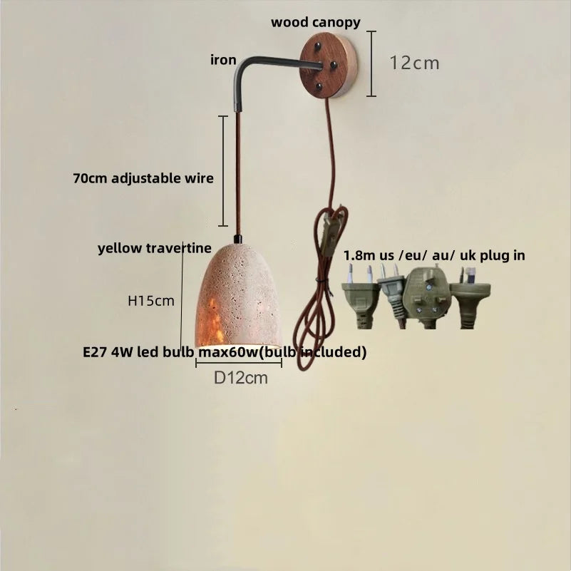 Crafted from high-quality stone material, this wall sconce exudes elegance and sophistication. The Yellow Travertine lampshade adds a touch of uniqueness to the design, creating a warm and inviting atmosphere in your space. The wooden canopy complements the overall look, making it a stylish choice for any decor.