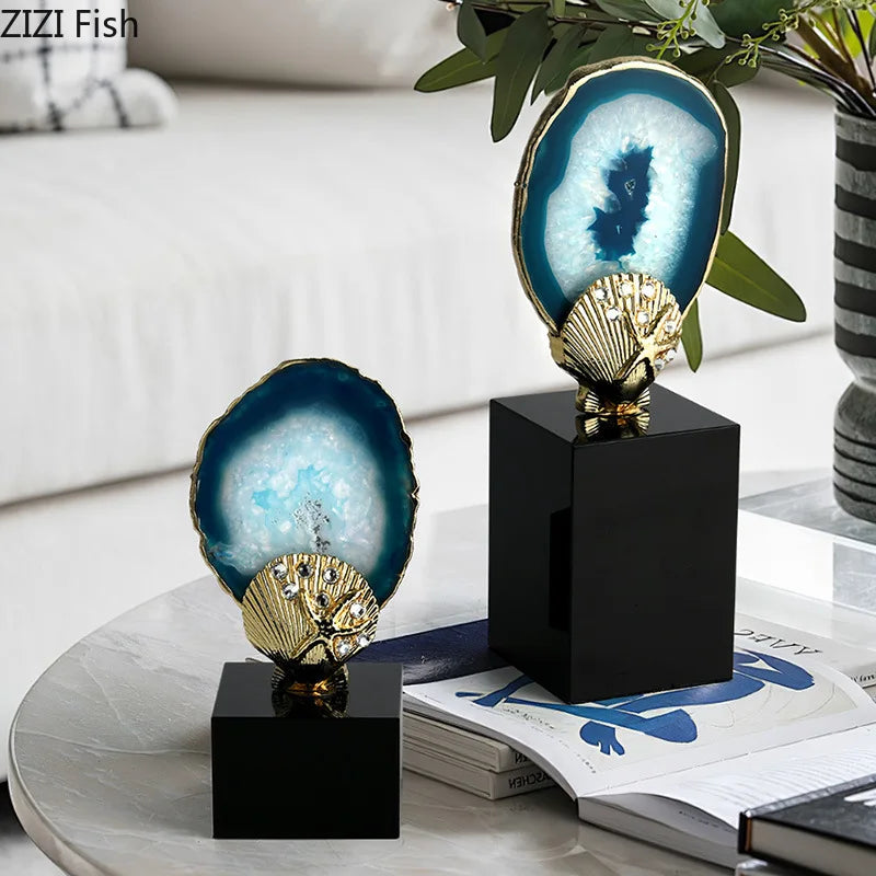 Blue Agate Stone Crystal Base Sculpture for Modern Aesthetic Decor by Afralia™