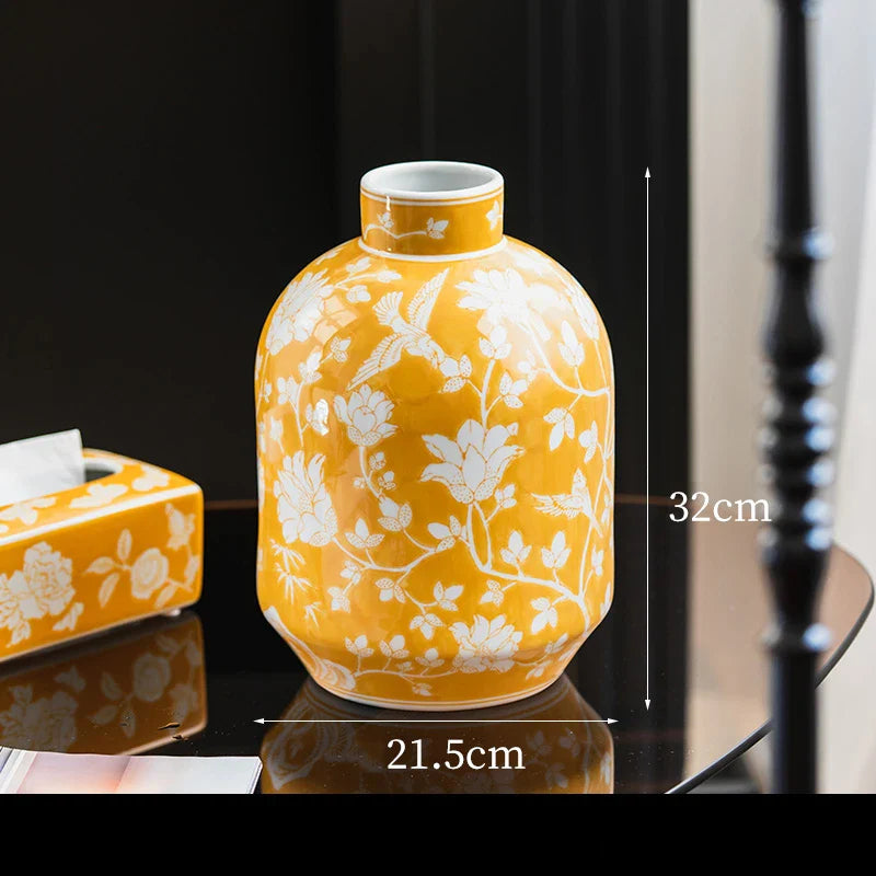 Blue & White Porcelain Vase with Flower & Bird Patterns by Afralia™: Elegant Table Decoration & Plant Pot