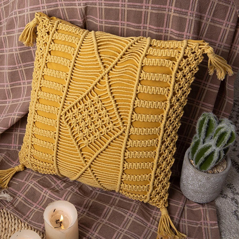 Add a pop of color and texture to your home with the Boho Chic Hand-Woven Macrame Cushion Cover with Tassels by Afralia™. Create a cozy and inviting atmosphere while showcasing your unique sense of style with this exquisite piece. Make a statement with this eye-catching cushion cover that combines comfort and sophistication effortlessly.