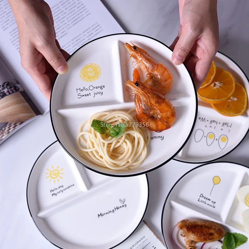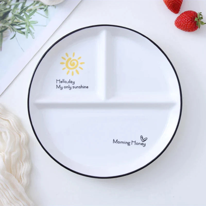 Afralia™ 8" Round Grid Plate - Perfect for Solo Dining or Family Breakfast