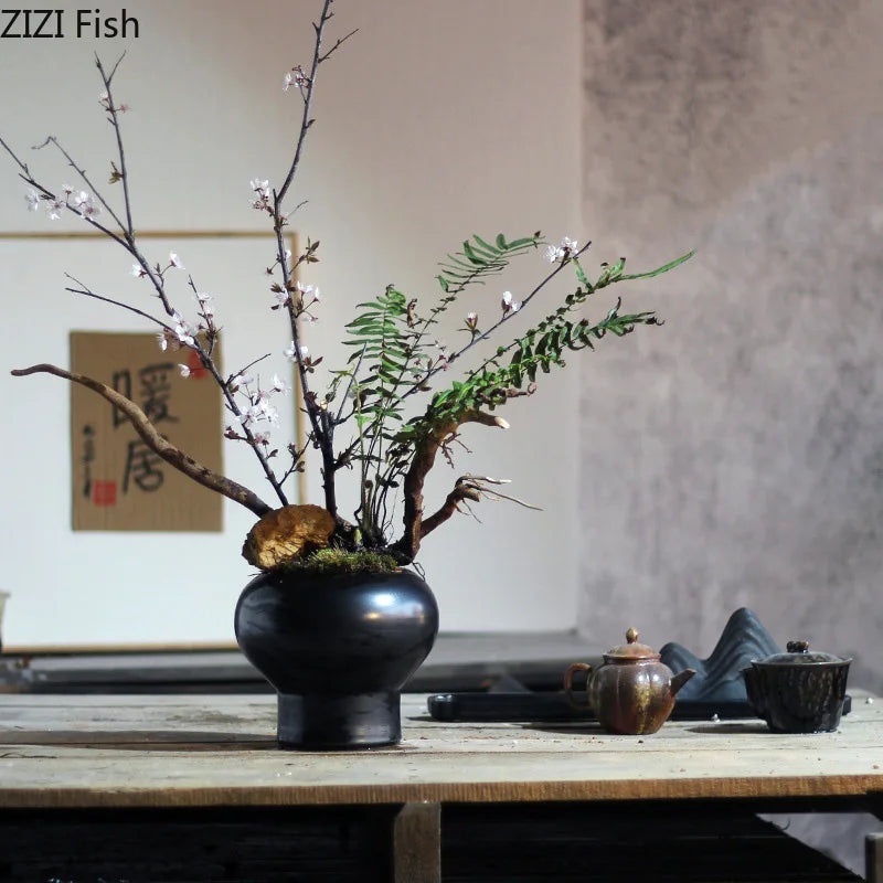 Ceramic Floral Vase Set Afralia™ Aesthetic Desk Decor Minimalist Room Flowers Arrangement