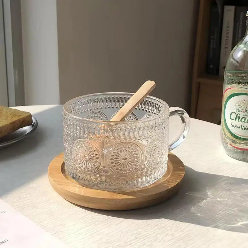 Embossed Retro Glass Cup by Afralia™: Lead-free, Heat Resistant, Vintage Drinkware