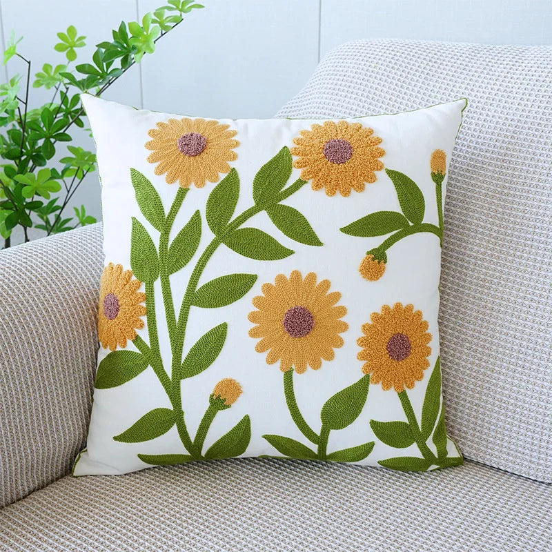 Embroidered Cotton Sunflower Cushion Cover 45x45cm for Living Room Sofa by Afralia™