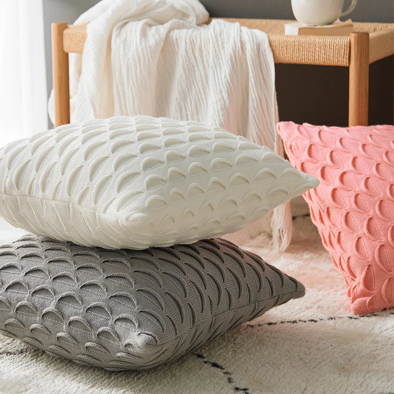 Fish Scale Decor Cushion Cover 45x45cm by Afralia™ - Pink Grey Cream Yellow Blue