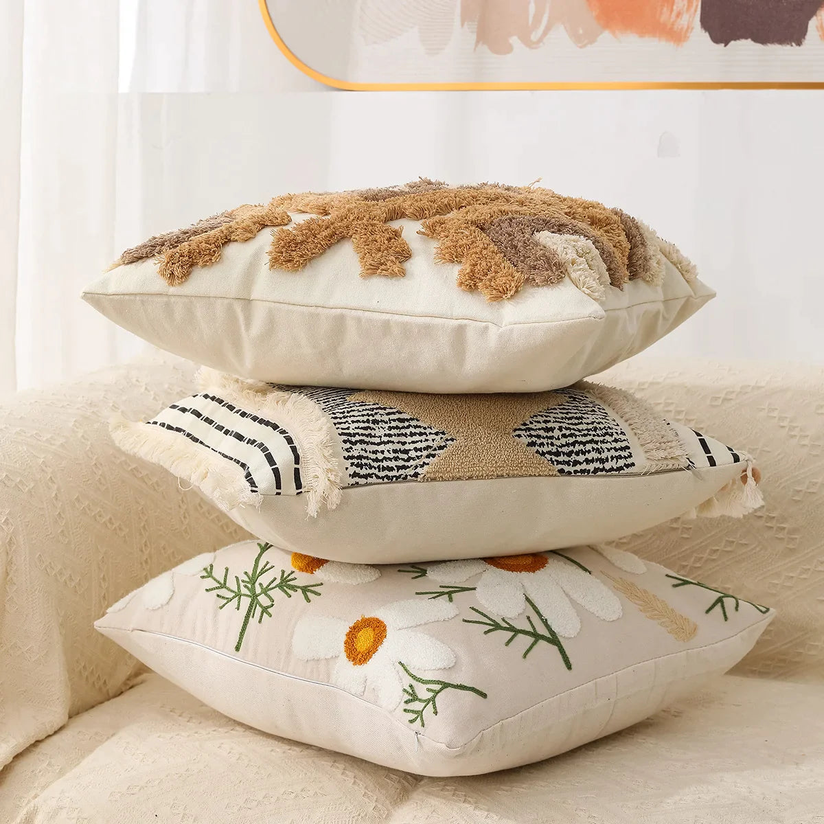 Elevate your living space with the Afralia™ Fringed Embroidered Geometric Tufted Cushion Cover, a true statement piece that combines style, comfort, and quality in one exquisite package. Add a