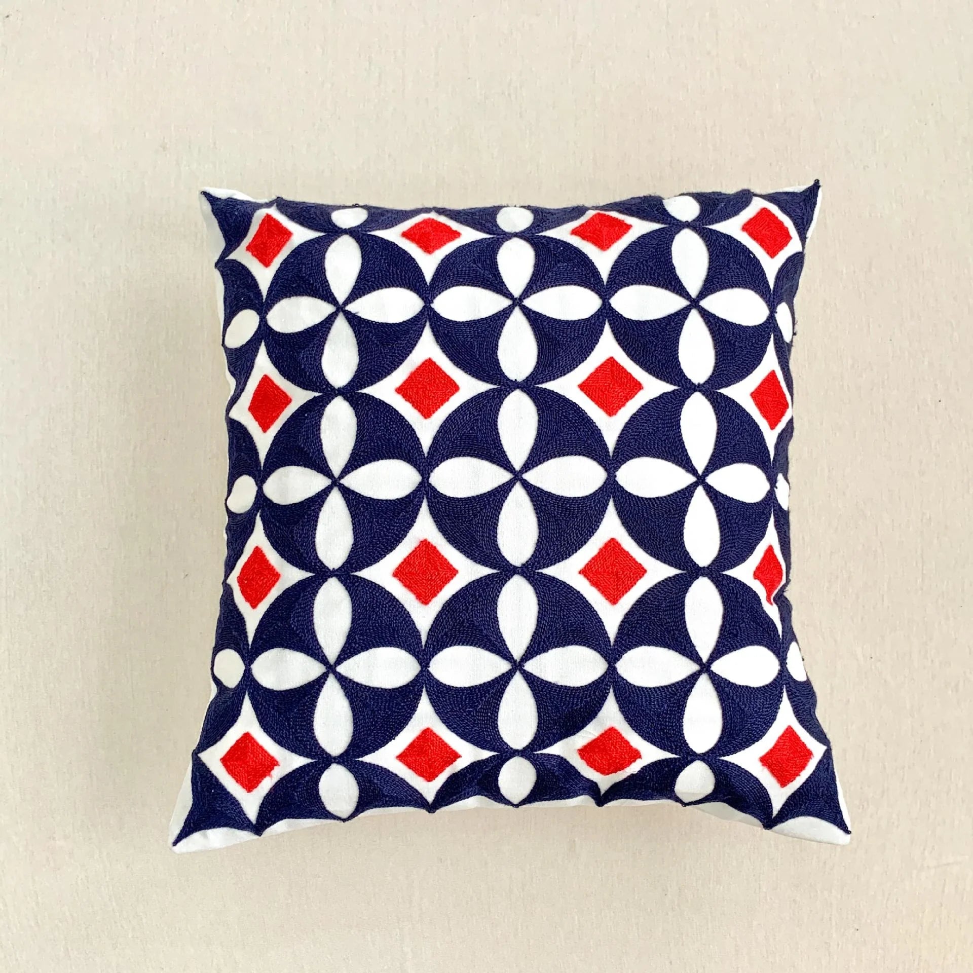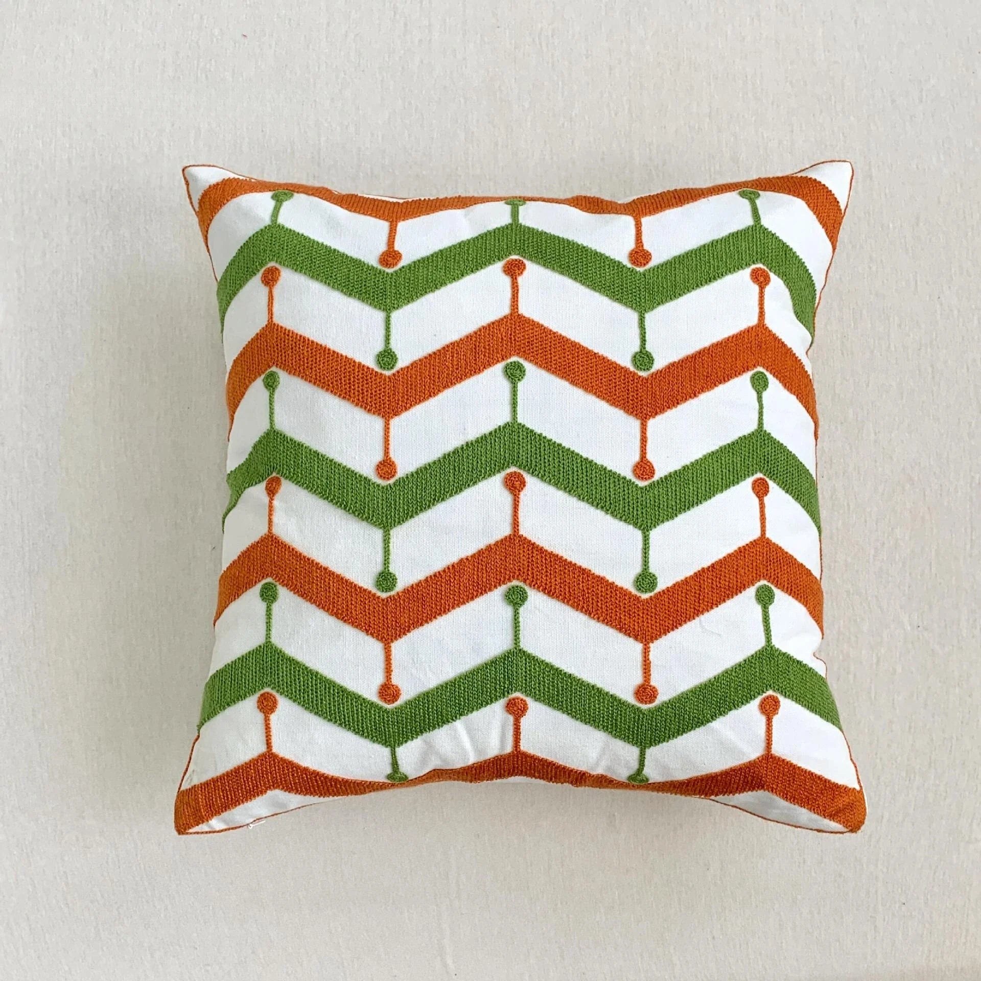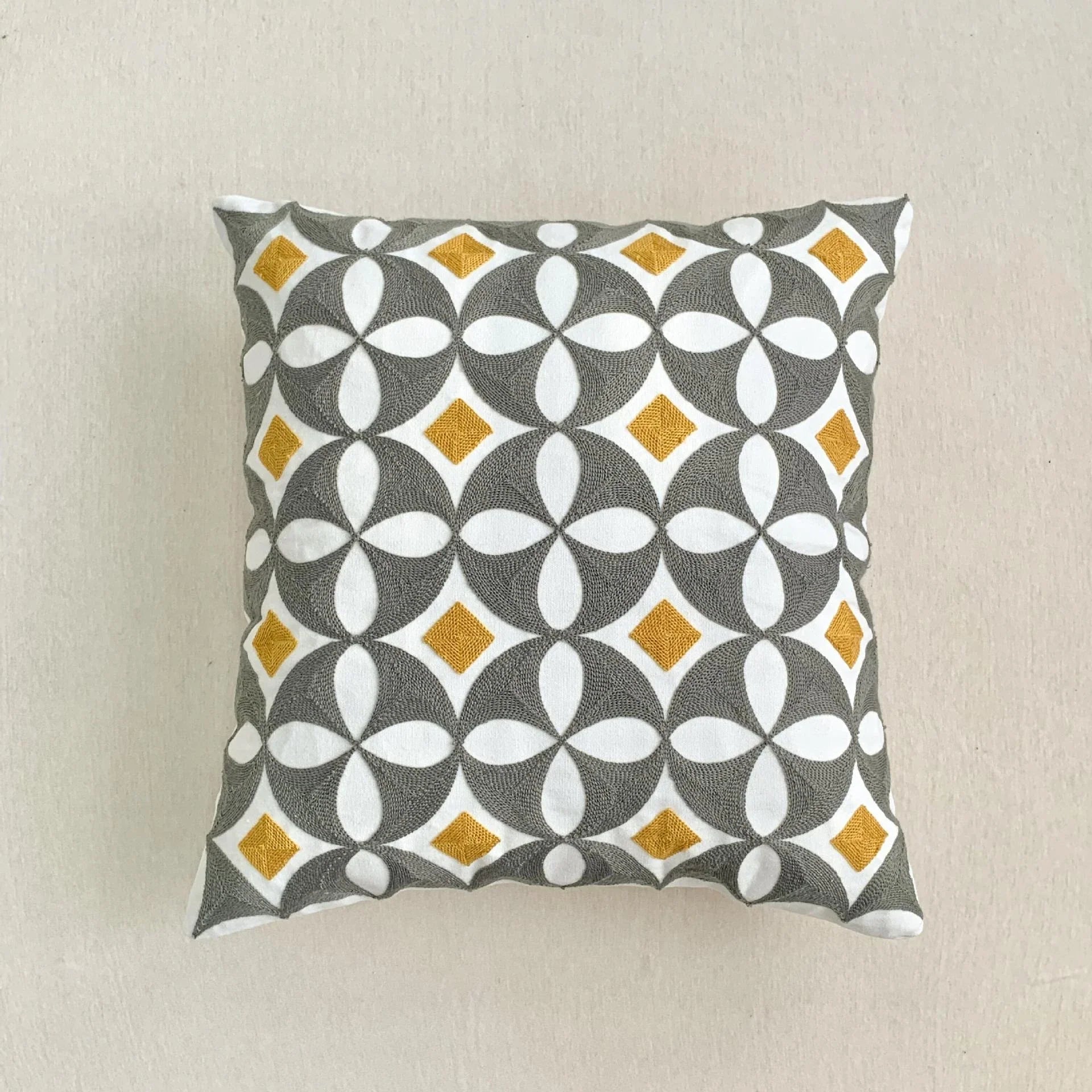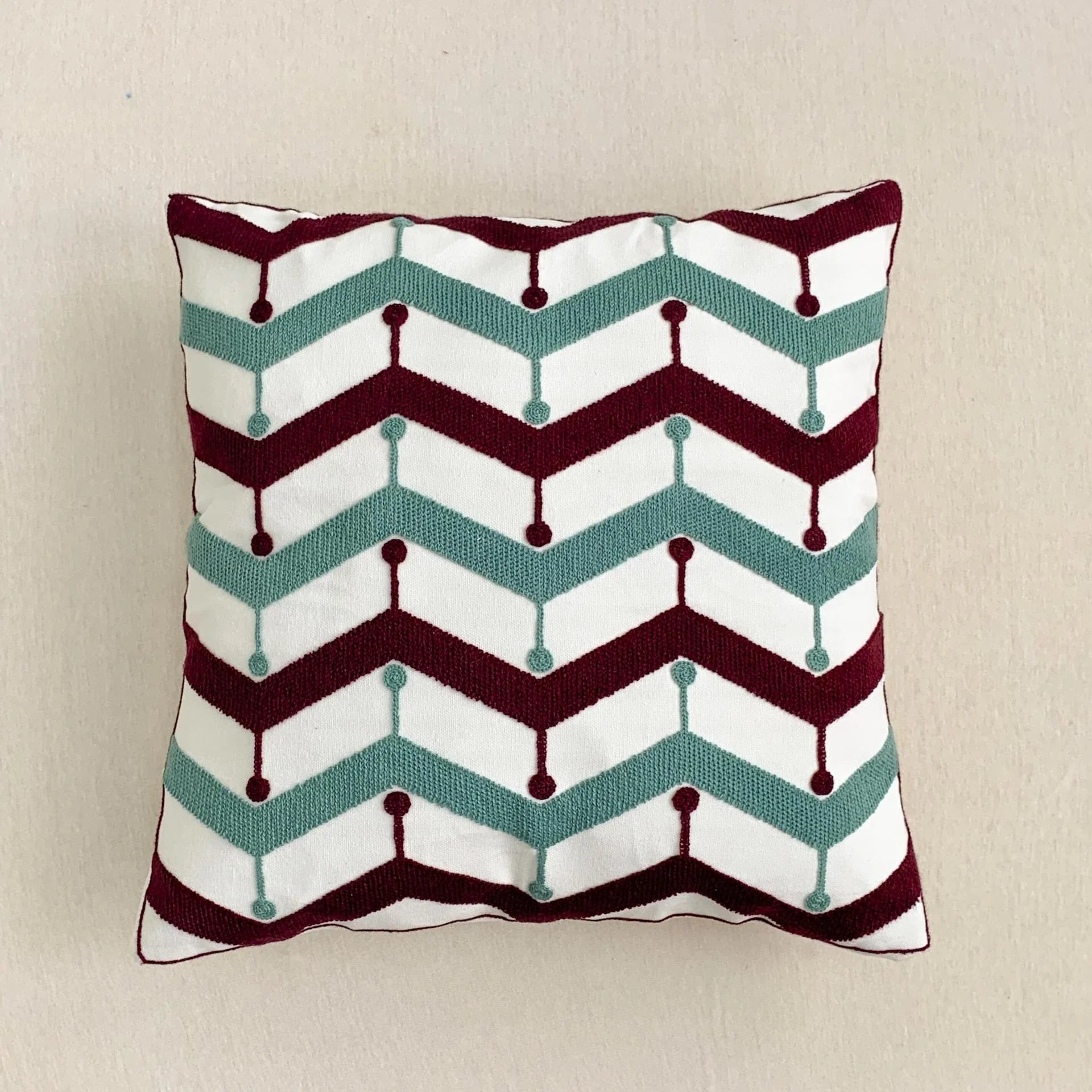 Geometric Embroidery Pillow Case 45x45cm Grey Yellow Blue Zigzag Afralia™ Home Decor