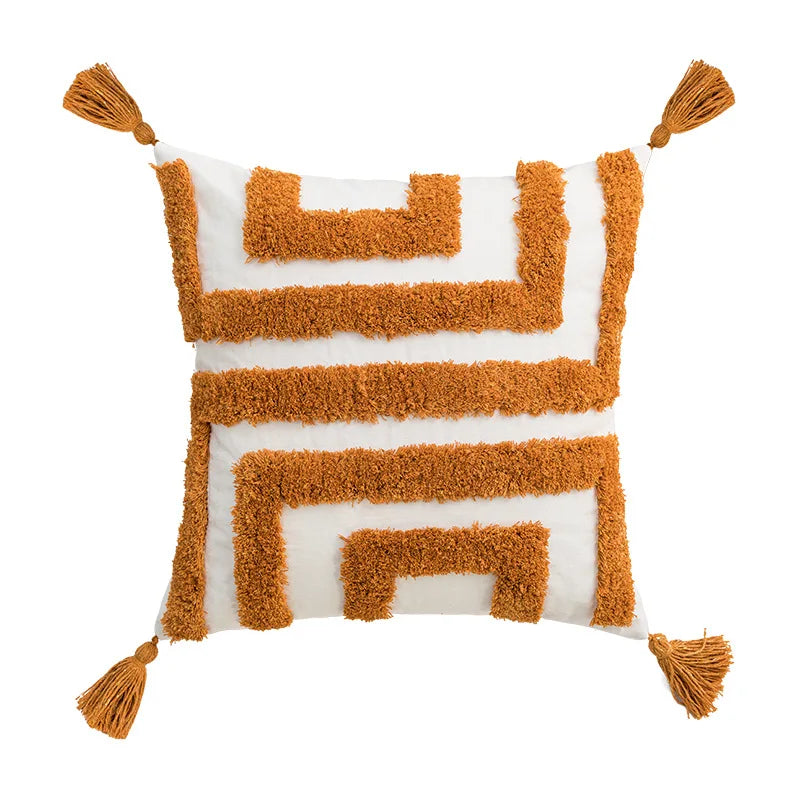 Geometric Half Circle Tassel Embroidery Cushion Cover by Afralia™ - Decorative Sofa Pillows