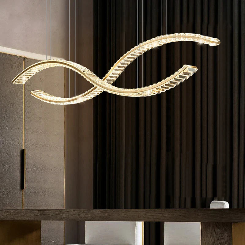 Enhance the ambiance of your dining room with our Afralia™ Light Luxury Dining Room LED Chandelier. This modern and elegant chandelier features a creative double wave design with long crystals, adding a touch of luxury to your space.