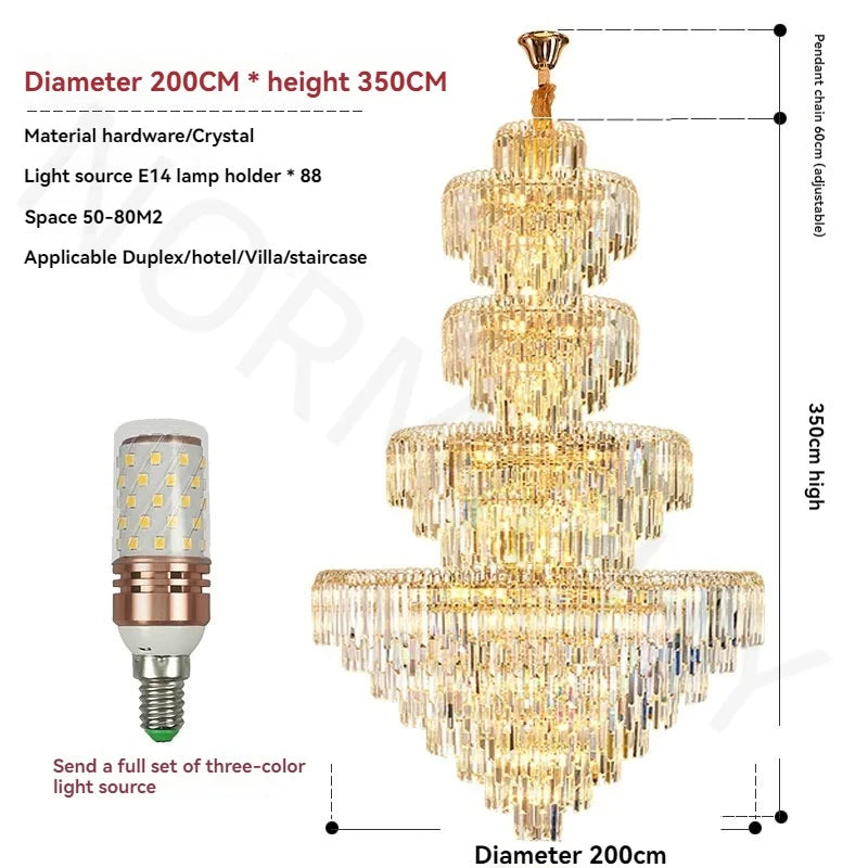 Introducing our exquisite European Duplex Large Chandelier, designed to bring a touch of luxury to your villa living space. This stunning chandelier is sure to be the focal point of any room, adding a touch of elegance and sophistication to your home decor.
