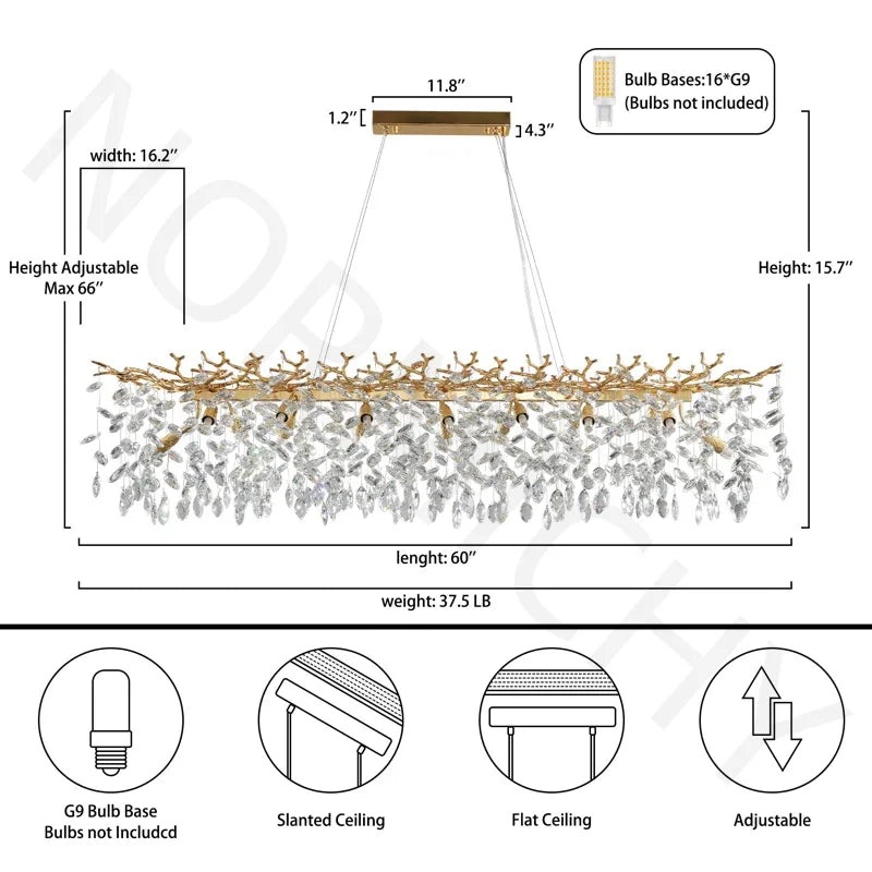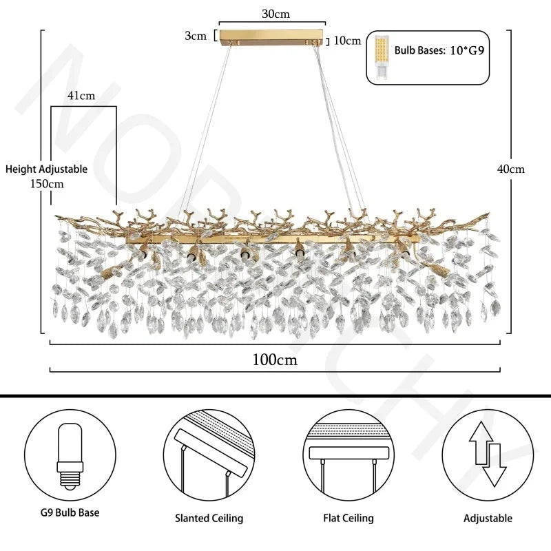 Introducing our luxurious Nordic Rectangle Crystal Chandelier, designed to elevate the ambiance of your dining area or living room with its sparkling lustre. Crafted with high-quality aluminum material and polished steel finish, this exquisite Crystal Chandelier adds a touch of modern elegance to your space.