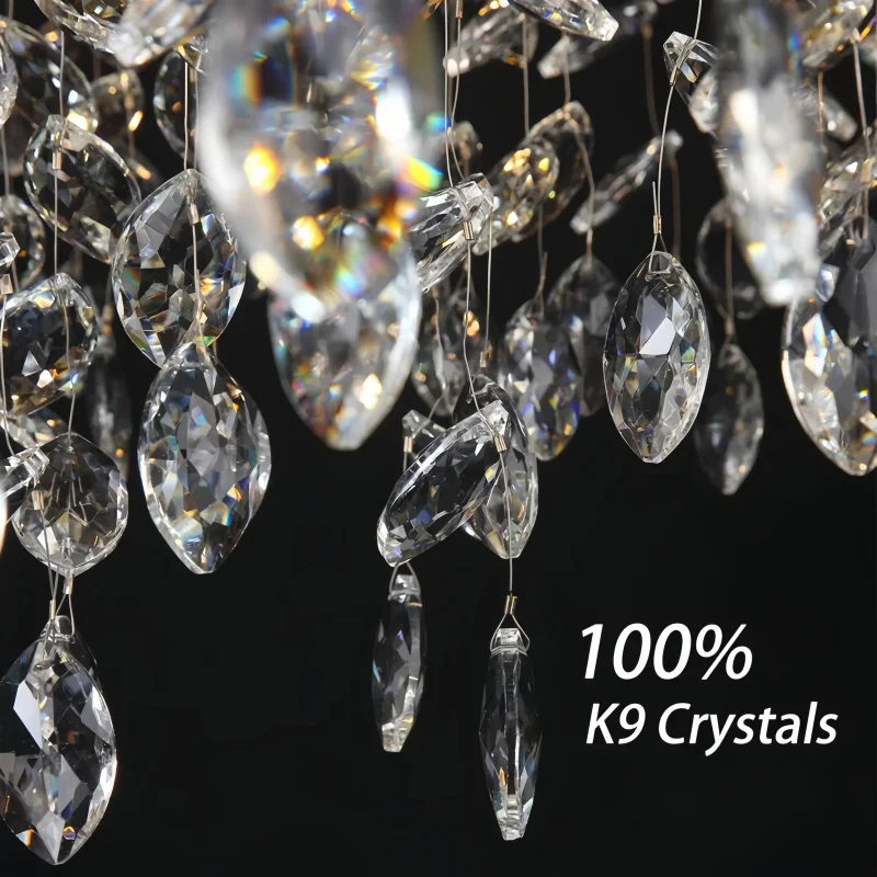 Experience the ultimate in lighting sophistication with this Crystal Chandelier, featuring LED bulbs that emit a luminous flux ranging from 2000 to 82000. The chandelier is designed for easy assembly with its semi-flush mount installation method, ensuring a hassle-free setup process.